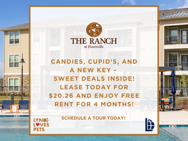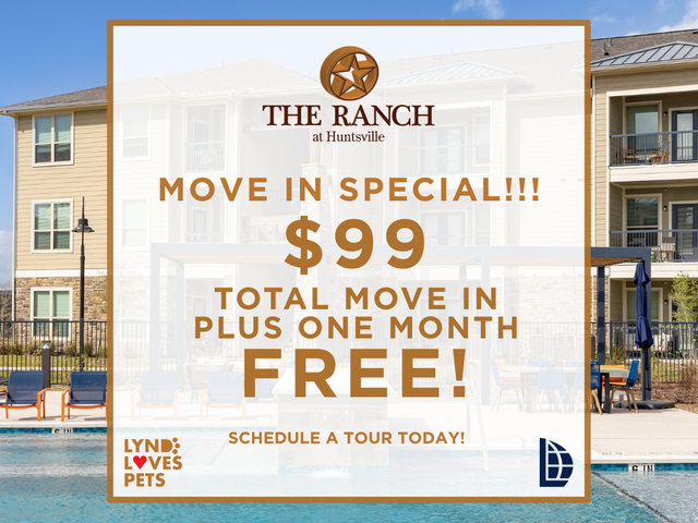 Welcome to Ranch at Huntsville, a residential community featuring one, two, and three-bedroom apartments in Huntsville, TX. Spacious layouts and amenities welcome you home, along with exceptional service and an ideal location within walking distance to shopping, dining, and entertainment options. Are you looking for an apt for rent in Huntsville, TX? Contact our friendly, professional office staff to schedule a tour today.